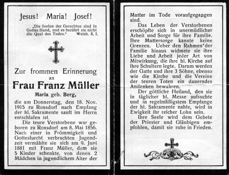 ∞ 9.6.1881 Franz Müller; 5 K., davon 2 jugendl. †; |
