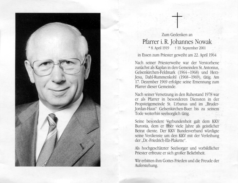 Priesterweihe Essen 22.4.1964; Kaplan in Gelsenkirchen-Feldmark (1964-68), Dahl-Rummenkohl (1968-69); 17.12.1969 Pfarrer; 1978 Ruhestand als Pfarrer in besonderen Diensten an der Propsteikirche St. Urbanus in Gelsenkirchen-Buer |