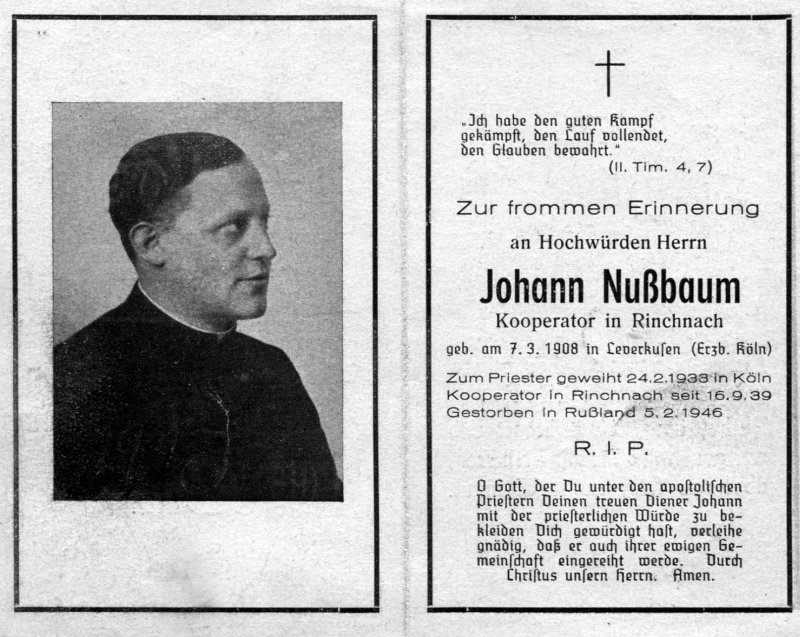 Priesterweihe Köln 24.2.1933; K∞perator in Rinchnach seit 16.9.1939 |