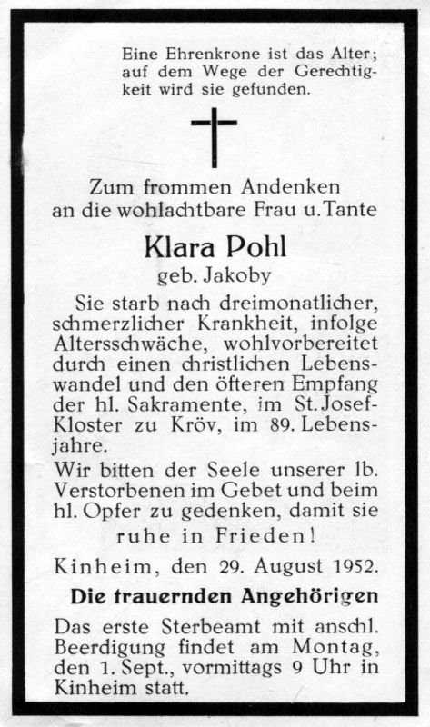 Kröv, St.-Josef-Kloster | Sterbedatum: |