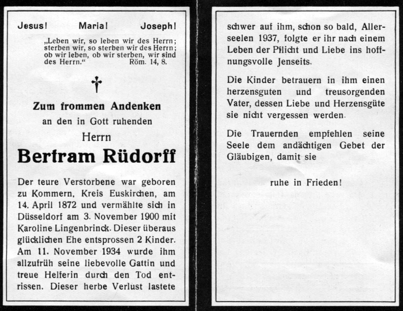 ∞ in Düsseldorf 3.11.1900 Karoline Lingenbrinck, † 11.11.1934; 2 K. |