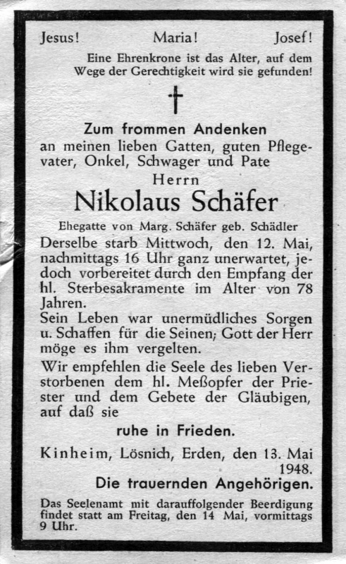 78 J.; ∞ Margarete Schädler; Wohnort: Kinheim