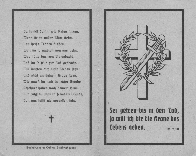 Gefallener 2. Weltkrieg; Druck in Siedlinghausen |