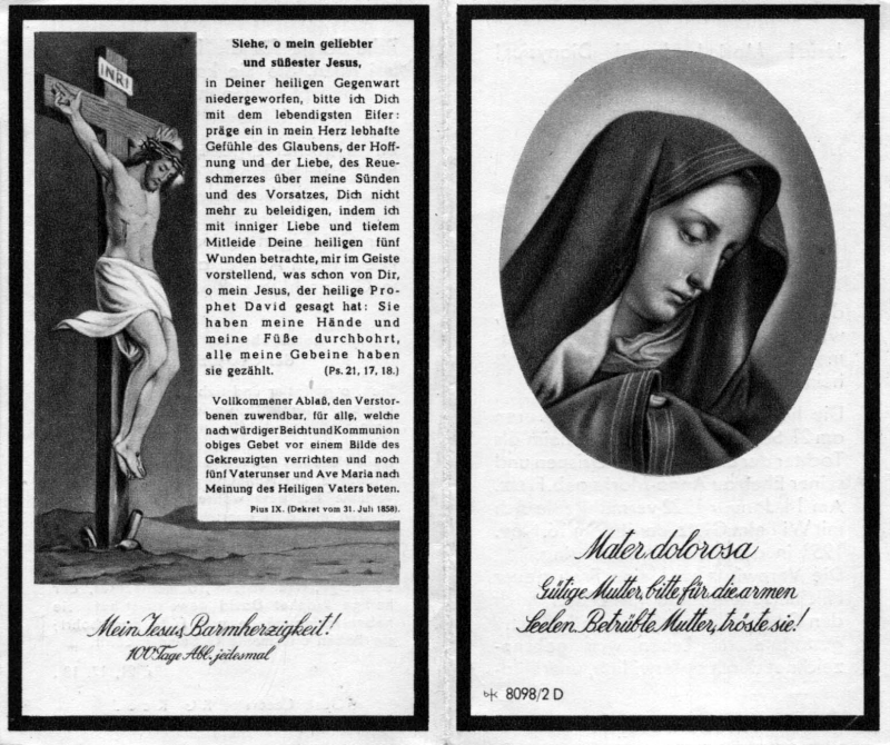 ∞ 1936 Friedrich Thiebes; 2 K., davon 1 mit 3 J. †; ihr Vater, lahm u. erblindet, den sie gepflegt hatte, † vor wenigen Wochen; Operation schien glücklich verlaufen |