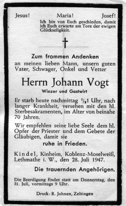 70 J.; Winzer u. Gastwirt; Wohnort: Kindel; Druck in Zeltingen/Mosel |