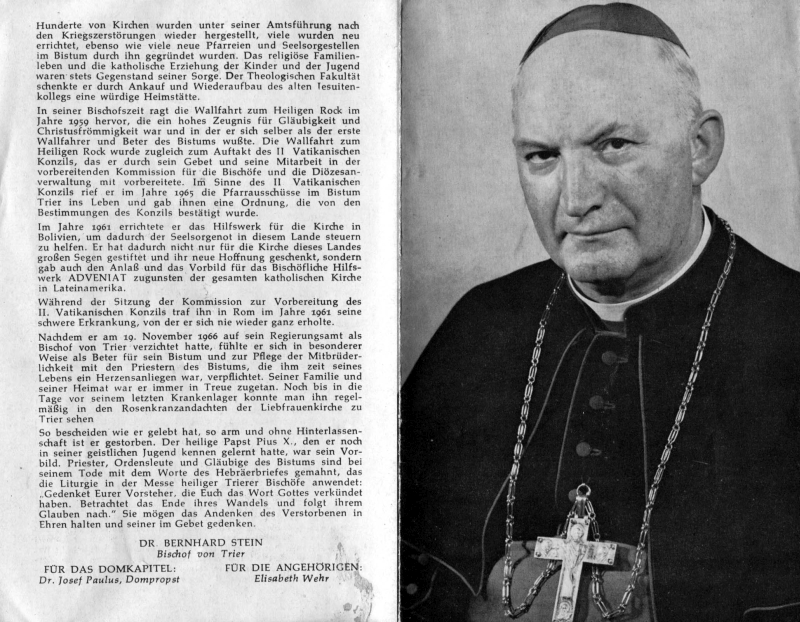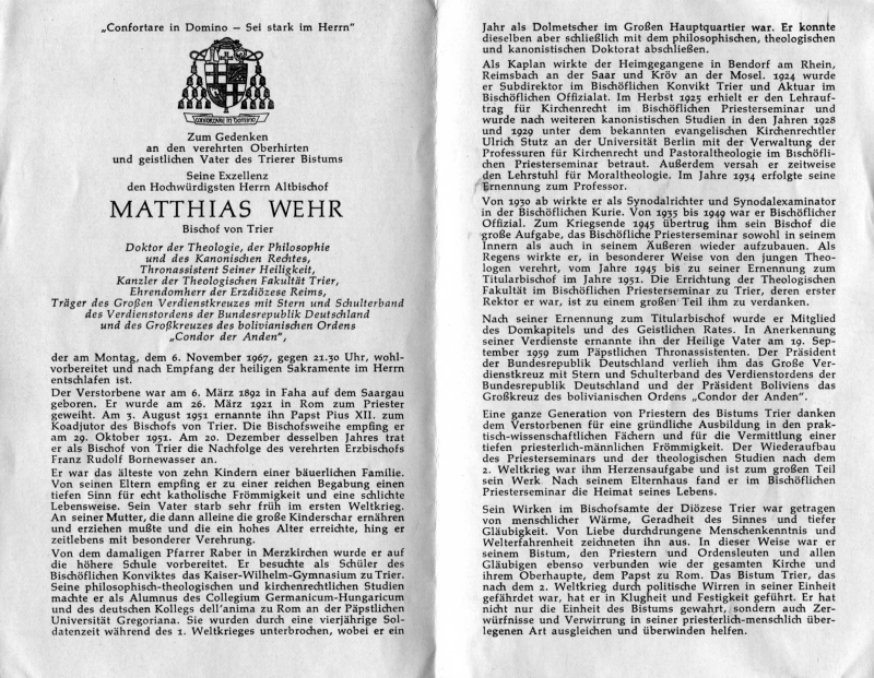 Priesterweihe 1921 Rom; 1951 Bischof von Trier; |