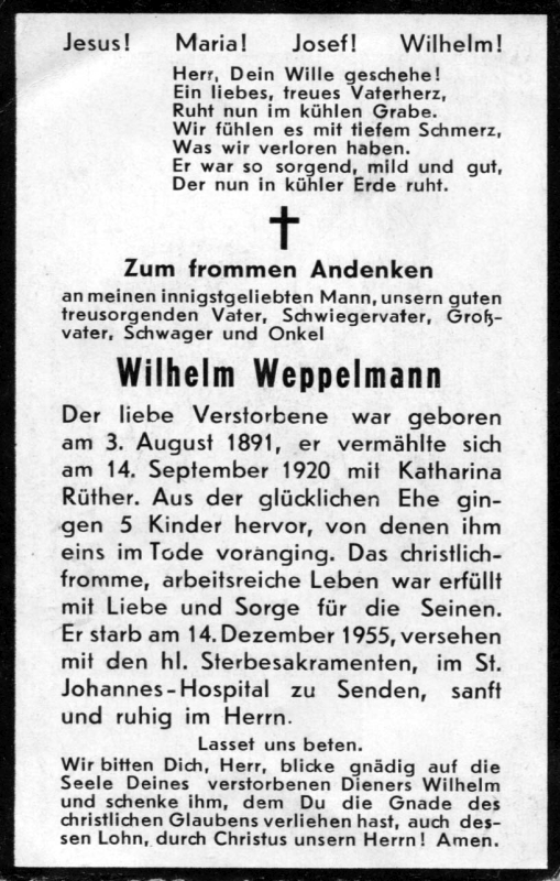 ∞ 14.9.1920 Katharina Rüther; 5 K., davon 1 † |