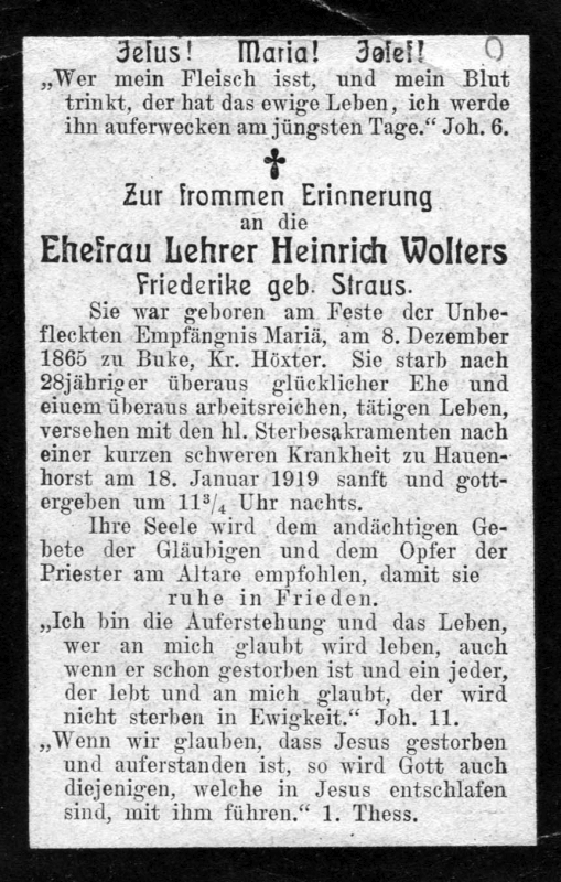 28 J. Ehe mit Heinrikch Wolters, Lehrer |