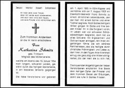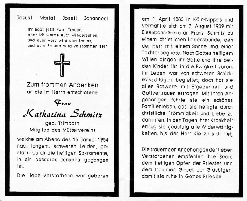∞ 7.8.1909 Eisenbahn-Sekretär Franz Schmitz, †; 2 K., beide † |