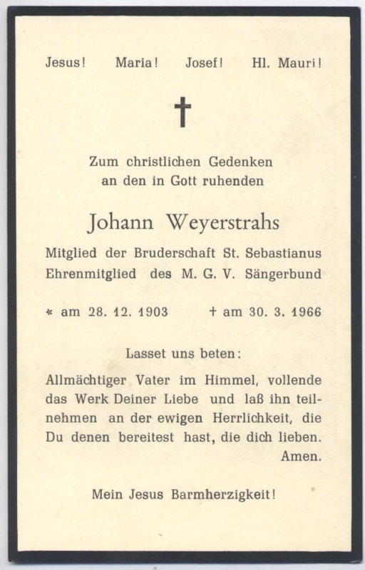 Mitgl. St.-Sebastianus-Bruderschaft u. MGV Sängerbund |