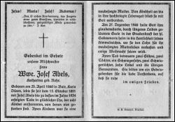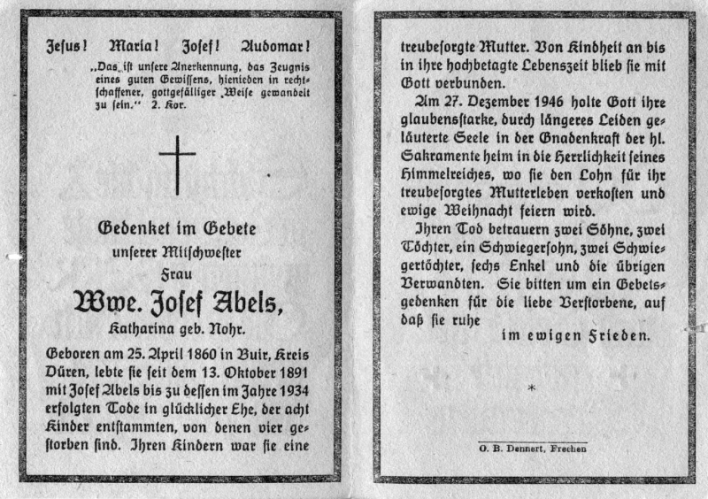 ∞ 13.10.1891 Josef Abels, † 1934; 8 K., davon 4 †; Druck in Frechen |