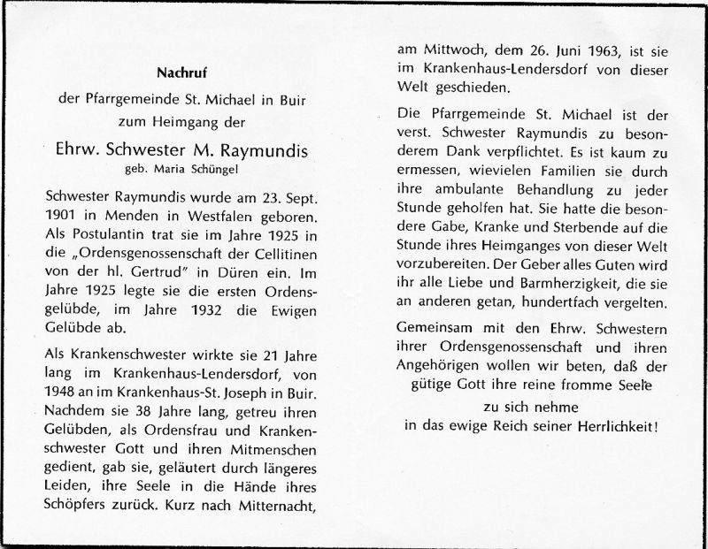 Raymundis, Schw. M., geb. Schüngel | Vorname: |