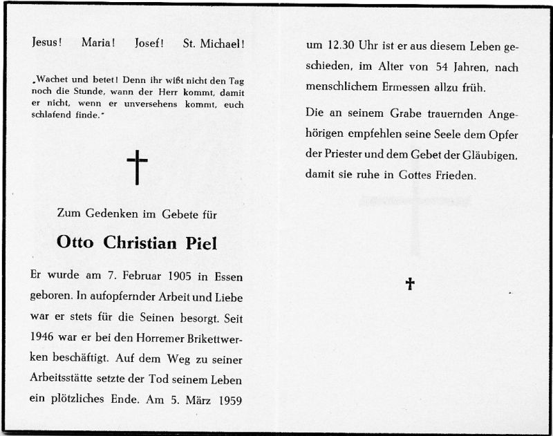 Seit 1946 b. Horremer Brikettwerken beschäftigt; auf dem Wege zur Arbeit plötzlich † |