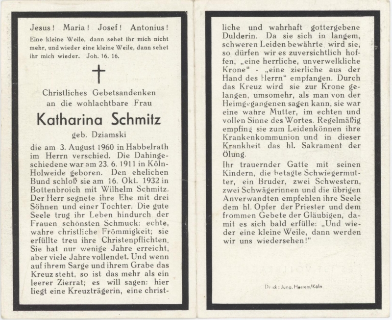 ∞ 16.10.1932 in Bottenbroich Wilhelm Schmitz; 4 K.; Druck in Horrem |
