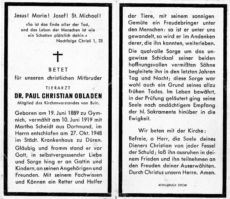 Tierarzt; Mitgl. Kirchenvorstand Buir; ∞ 10.6.1919 Martha Scheidt aus Dortmund (Buir) |