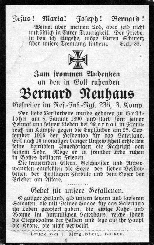 Gefallener 1. Weltkrieg; Druck in Borken |