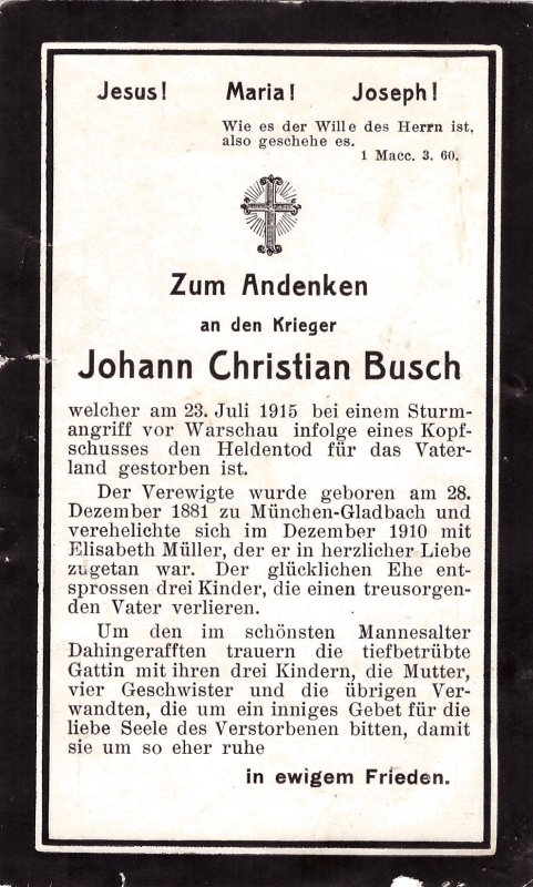 | Gefallener 1. Weltkrieg; ∞ Dez. 1910 Elisabeth Müller; 3 K. |