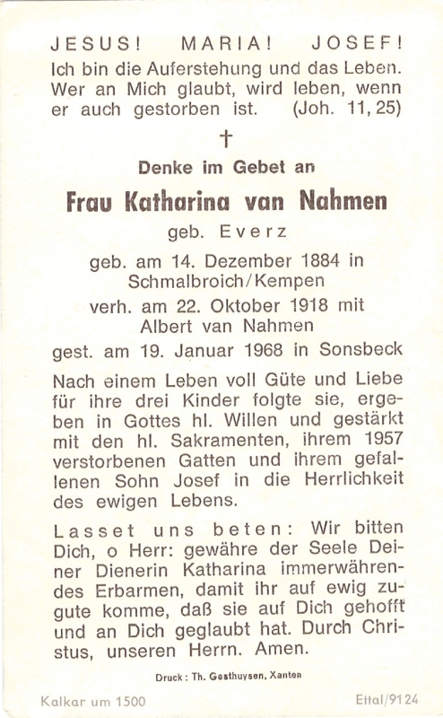 | ∞ 22.10.1918 Albert van Nahmen; Druck in Xanten |