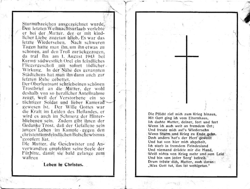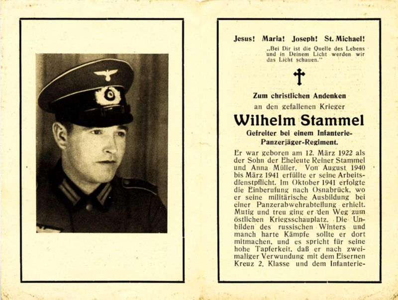 Eltern: Reiner Stammel u. Anna geb. Müller; Okt. 1941 Einberufung; östl. Kriegsschauplatz (Buir) |