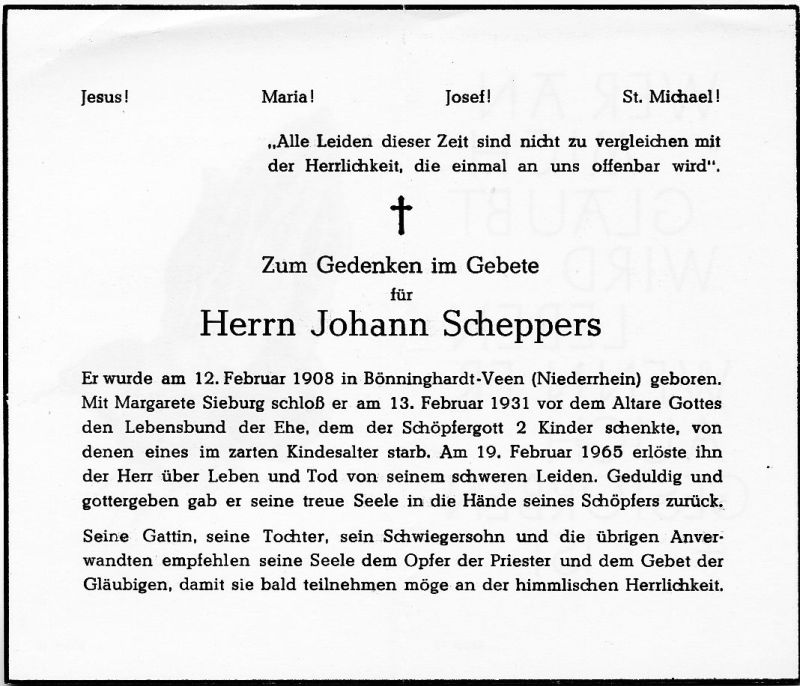 ∞ 13.2.1931 Margarete Sieburg; 2 K., davon 1 früh †; schweres Leiden (Buir) |