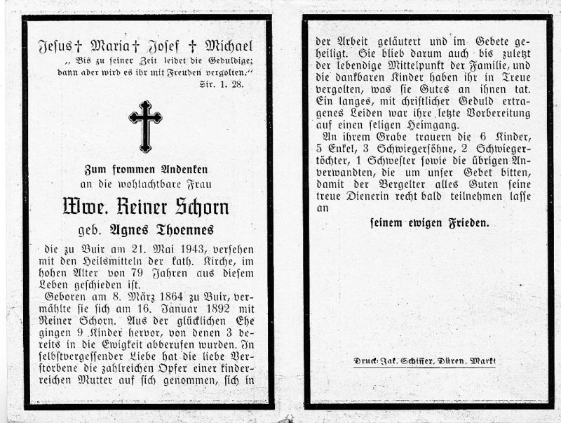 ∞ 16.1.1892 Reiner Schorn; 9 K., davon 3 † |