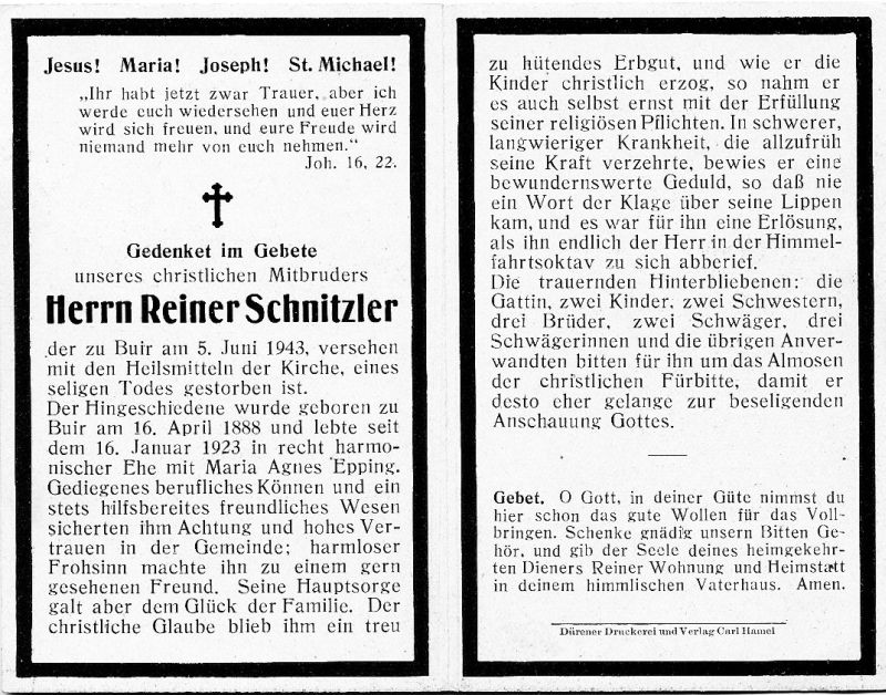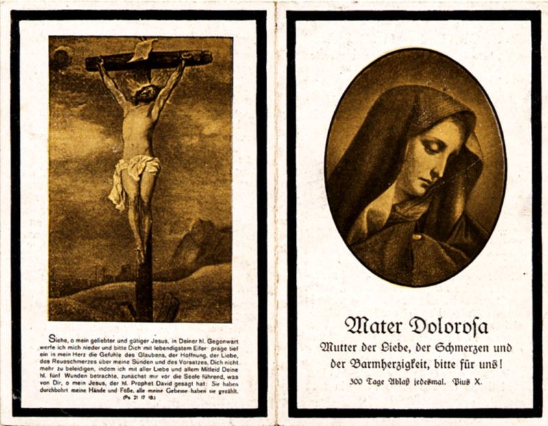 ∞ 16.1.1923 Maria Agnes Epping; schwere, langwierige Krankheit; 2 überlebende Kinder |