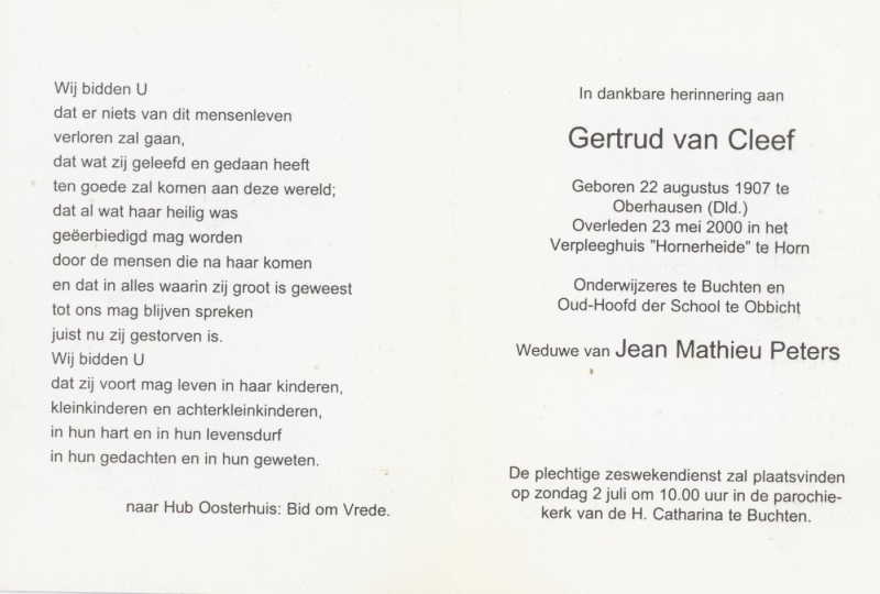 Peters, geb. Cleef, van | Vorname: |