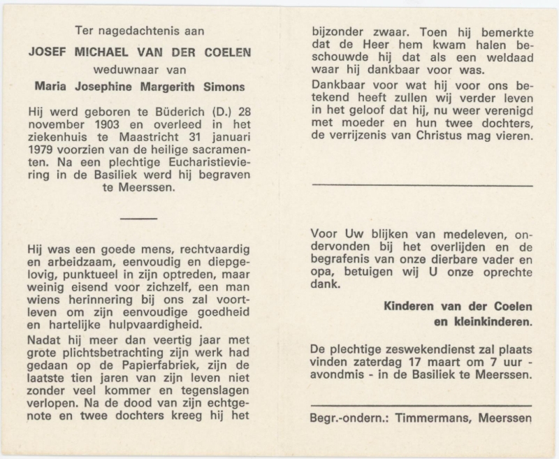 Coelen, van der, Josef Michael