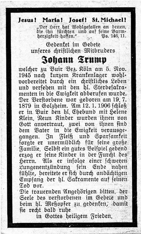 ∞ 12.1.1906 in Buir Helene Klein; 9 K., davon 2 †; Lungenentzündung |