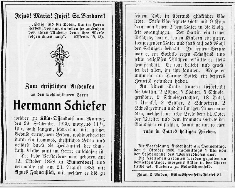 | ∞ 23.8.1883 Agnes Fahnenstich; 9 Kinder, davon 2 verstorben |