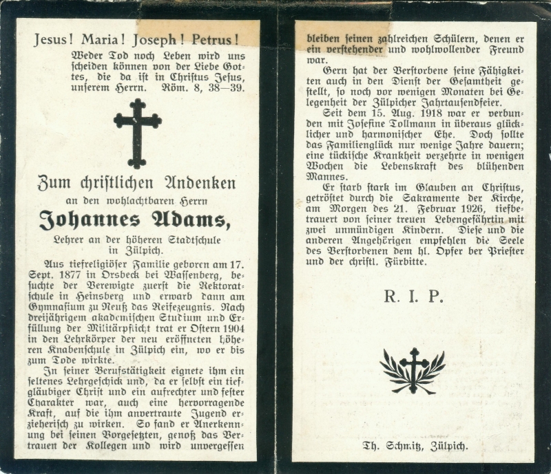 Lehrer; ∞ 15.8.1918 Josefine Tollmann |