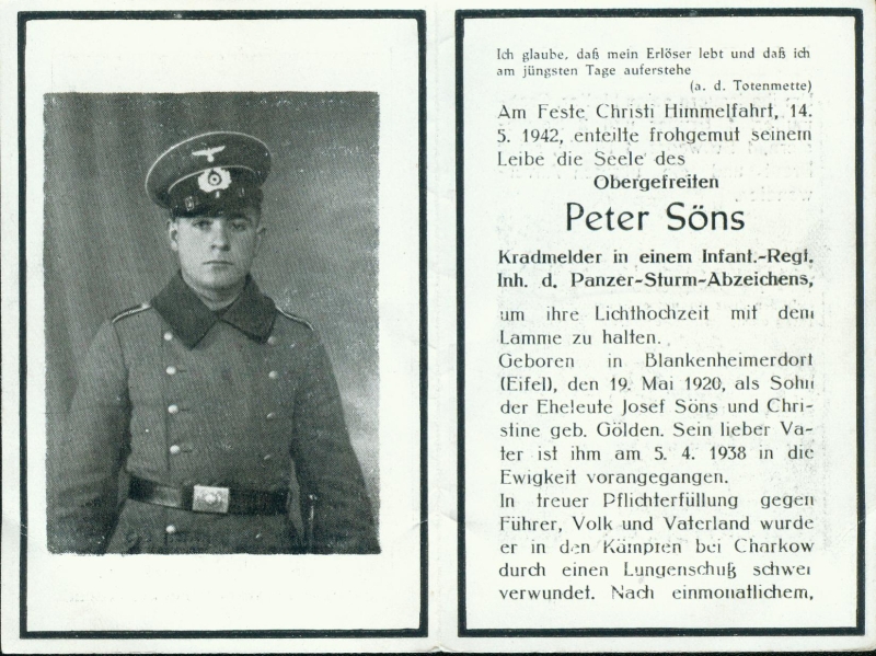 Eltern: Josef Söns 5.4.1938 und Christine Gölden; Gefallener 2. Weltkrieg |