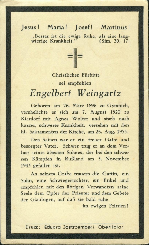 ∞ 7.8.1920 Agnes Wolter; 2 K. davon 1 † |
