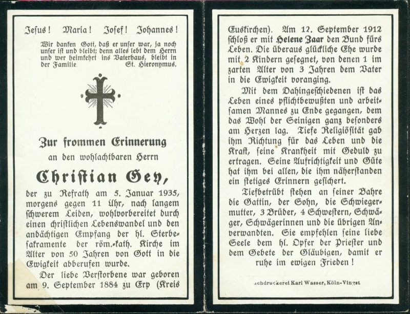 ∞ 12.9.1912 Helene Zaar; 2 K. davon 1 † |