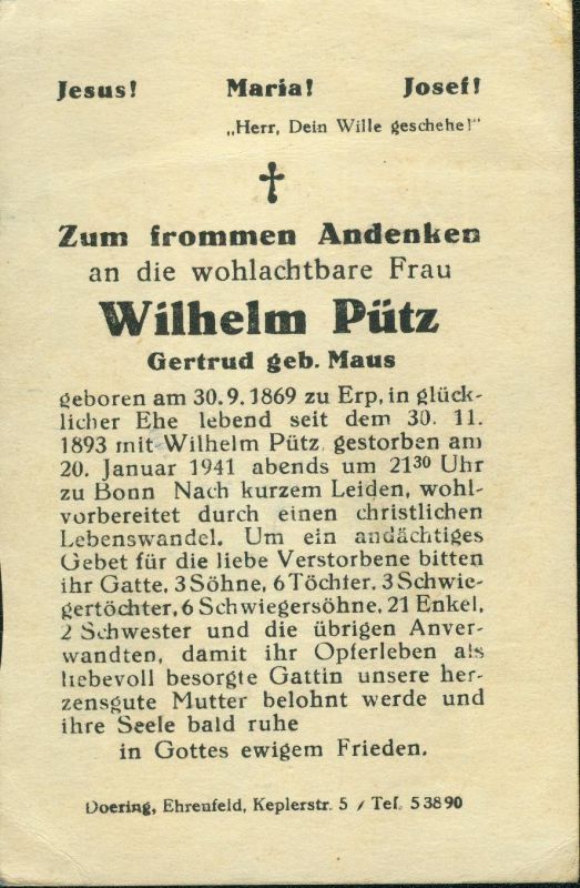 ∞ 30.11.1893 Wilhelm Pütz; 9 K. |