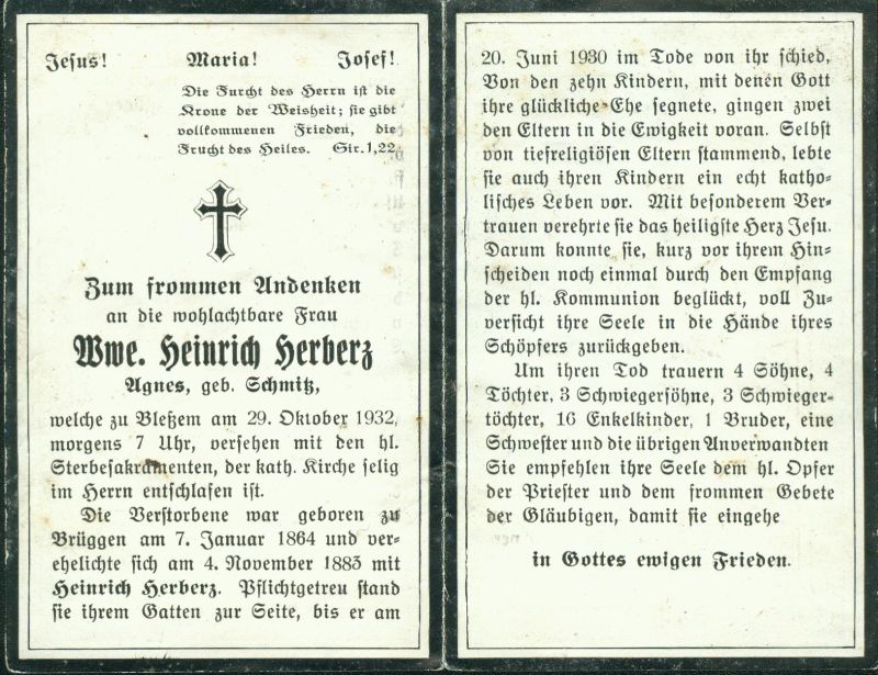 ∞ 4.11.1885 Heinrich Herberz † 20.6.1930, 10 K. davon 2 † |