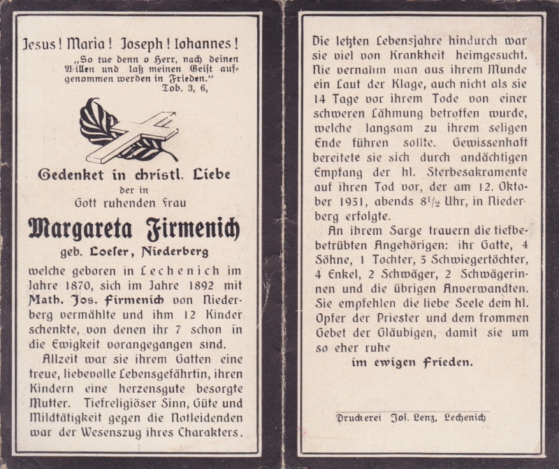∞ 1892 Math. Jos. Firmenich; 12 K. davon 7 † |