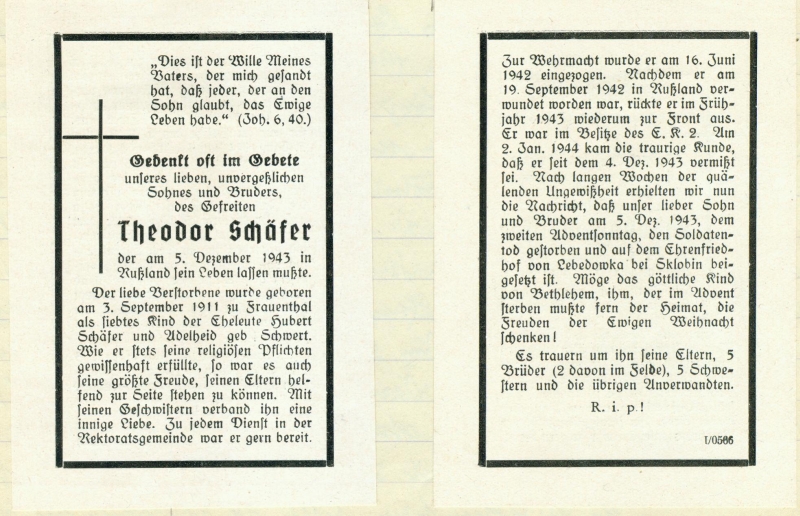 | Eltern: Hubert Schäfer und Adelheid Schwert; Gefallener 2. Weltkrieg |