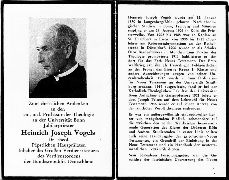 24.8.1902 Priesterweihe Köln; Kaplan 1902-05 St. Engelbert Essen, 1906-11 Oberlehrer Düsseldorf, 1911 Habilitation; Feldgeistl. 1. Weltkrieg; 1917 Uni Straßburg, 1919 ausgewiesen, Prof. Uni Bonn |