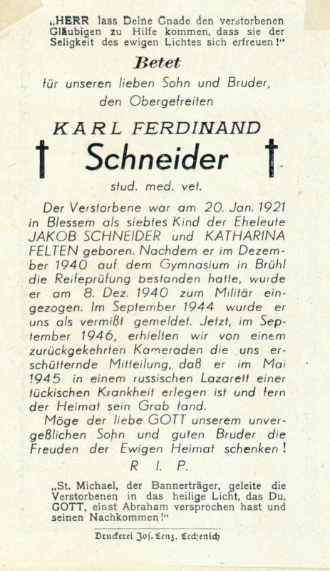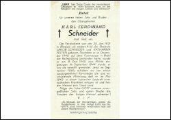 | Obergefreiter; Eltern: Jakob Schneider und Katharina Felten; Gefallener 2. Weltkrieg |