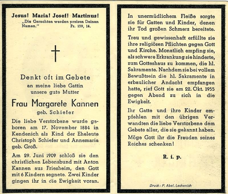 | Eltern: Christoph Schiefer und Annemarie, geb Groß |