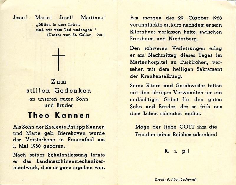| Eltern: Philipp Kannen und Maria, geb Birekhoven |