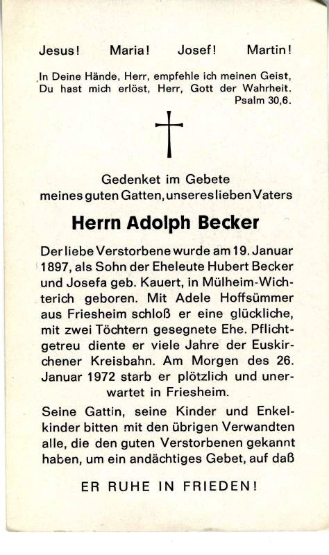 Eltern: Hubert Becker und Josefa, geb Kauert; ∞ Adele Hoffsümmer |
