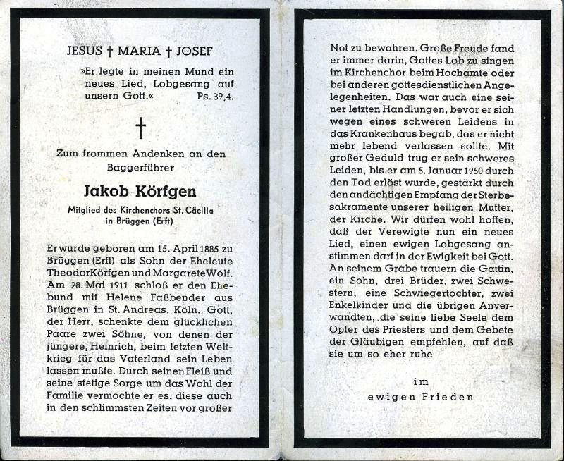 Eltern: Theodor Körfgen und Margarete Körfgen, geb. Wolf; ∞ Helene Faßbender |