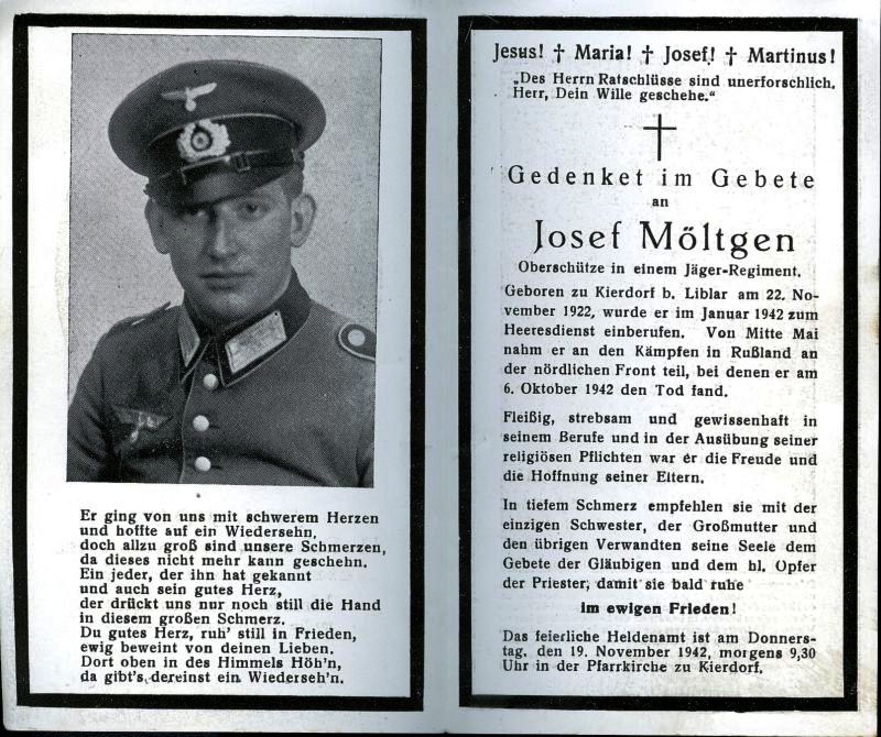Gefallener 2. Weltkrieg; Oberschütze in einem Jägerregiment |