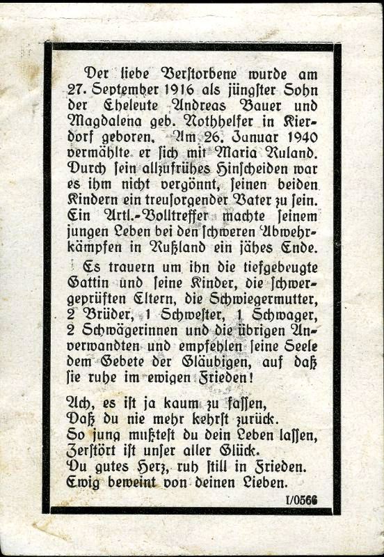 Eltern: Andreas und Maria Magdalena Bauer, geb. Nothelfer; ∞ Maria Bauer, geb. Ruland |