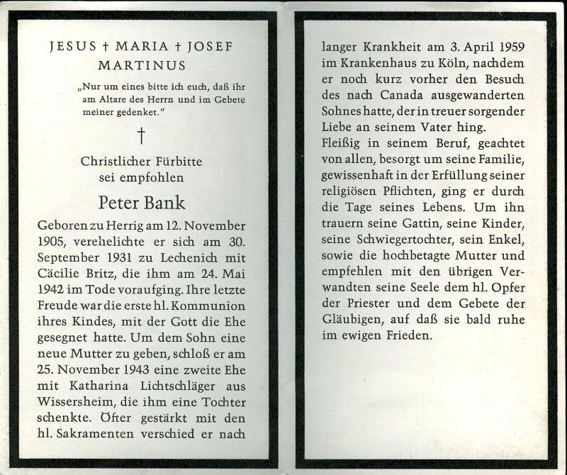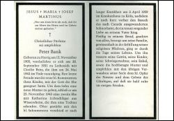 1.∞ Cäcilie Bank, geb. Britz; 2. ∞ Katharina Bank, geb. Lichtschläger |