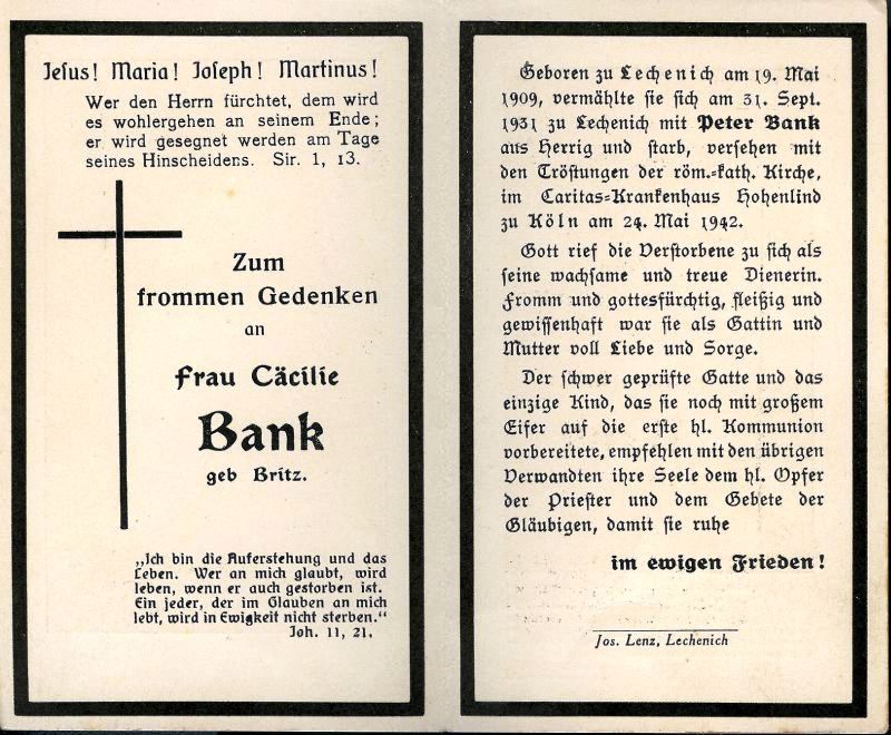 Bank, geb. Britz | Vorname: |