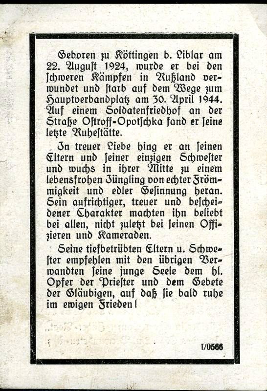 Gefallener 2. Weltkrieg; Melder in einem Panzer-Jäger-Regiment |