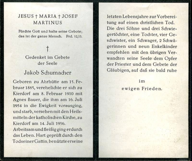 ∞ Agnes Schumacher, geb. Bauer (gest. 16.7.1954) |